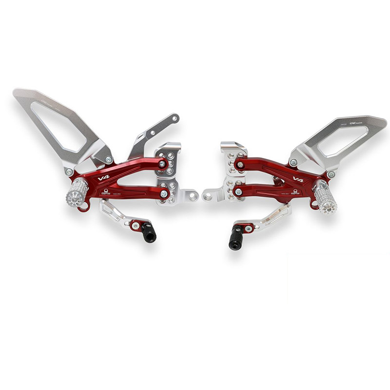 CNC RACING PRAMAC LTD REARSETS SILVER RED FOR DUCATI STREETFIGHTER V4 1100 2020 PART # PE409RPR