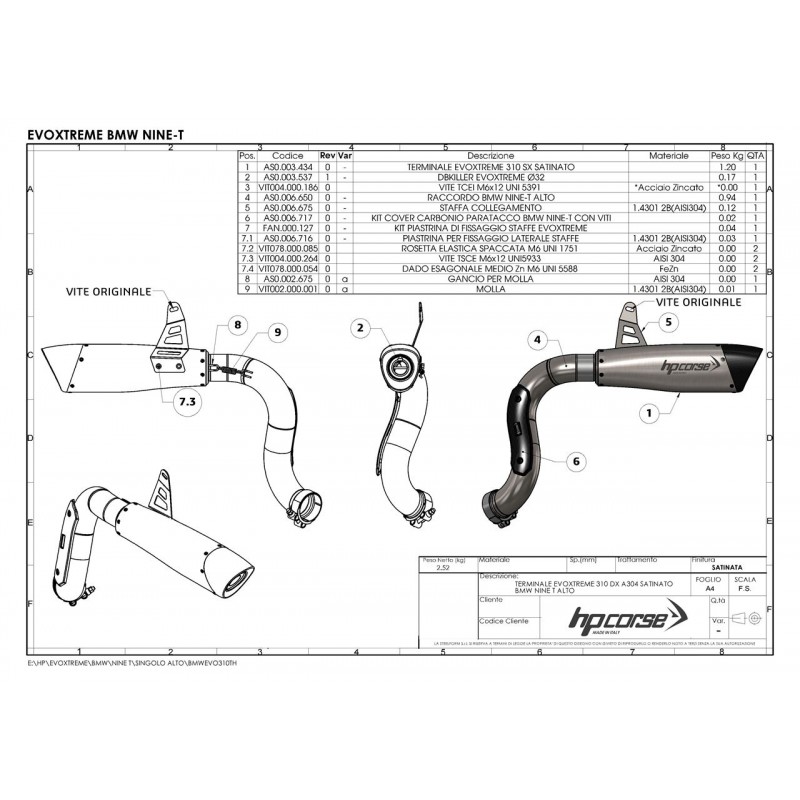 HP Corse Evoxtreme 310 Black For BMW R nineT 2014-2016 Part # BMWEVO310THB-AB