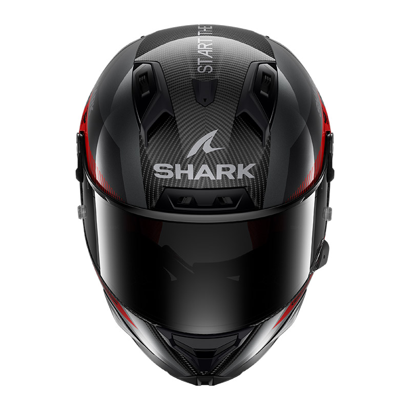 Carbon shell, adaptive aero fins, racing accessories, wide vision visor |