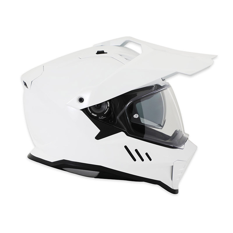 | Design | Clean white finish with rugged adventure styling for on-road and off-road use |